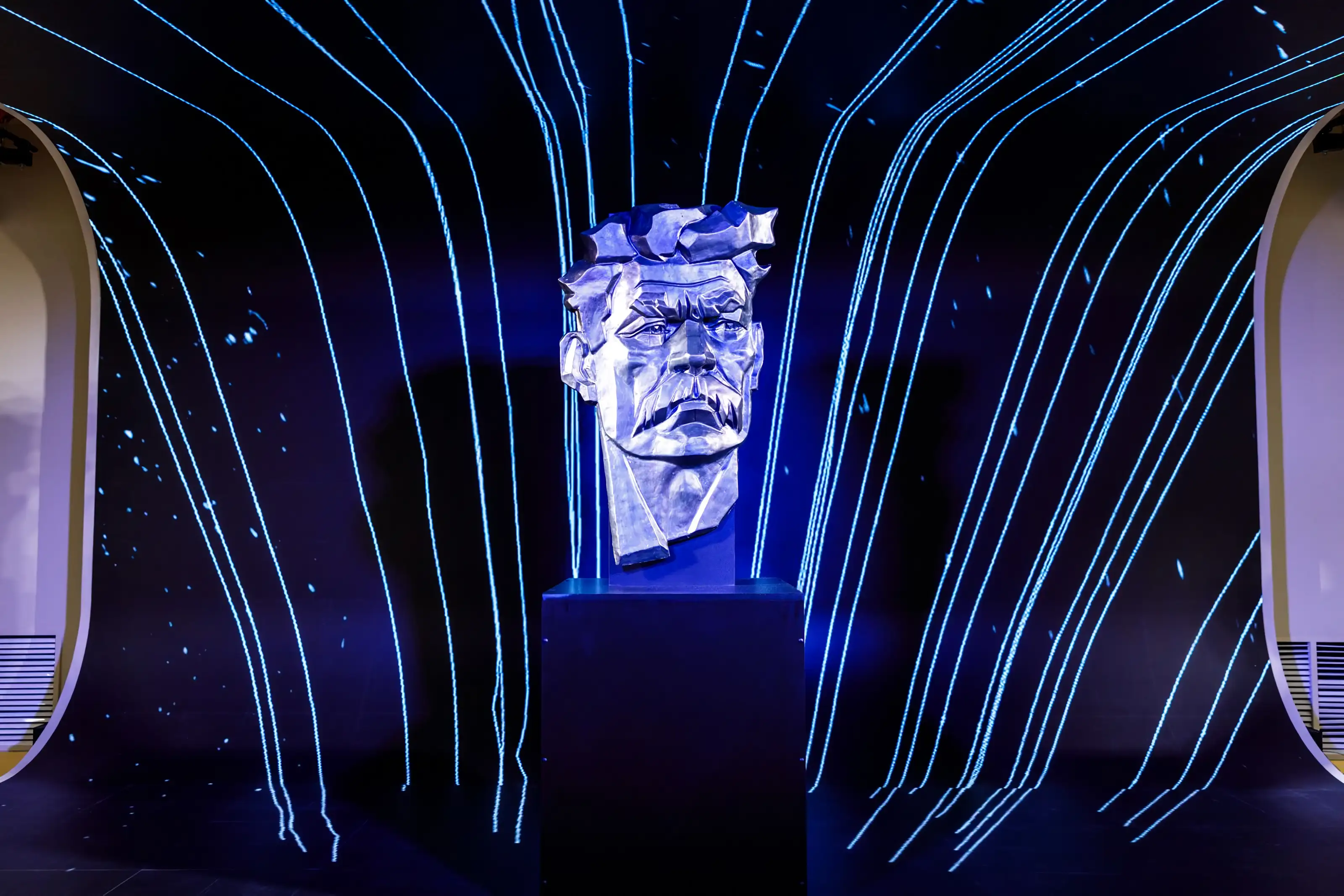 Завершением стала презентация нового памятника Максиму Горькому, где динамические световые эффекты подчеркивали энергию и масштаб события.